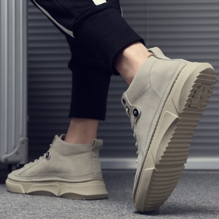 Autumn Men's Shoes New High-Top Leather Sneakers Men's Casual Martin Boots Trendy White Shoes