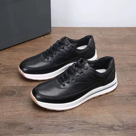 Men's sports shoes soft sole soft surface genuine leather casual running shoes black